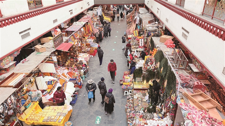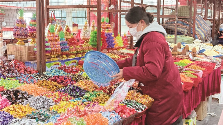 据悉,本次八廓商城年货节自1月14日启动,将持续至2月16日13时。目前,该商城日均人流量达 5000人次,预计一周后将迎来客流高峰。本次年货节还吸引了青海、新疆等地的特色商户入驻,他们带来的茶叶、区外特色糖果等商品,为雪域年货市场增添了别样风情,让当地百姓在采购传统年货的同时,也能领略到不同地区的文化魅力。(文/记者 张雪芳 图/记者 余书冉)