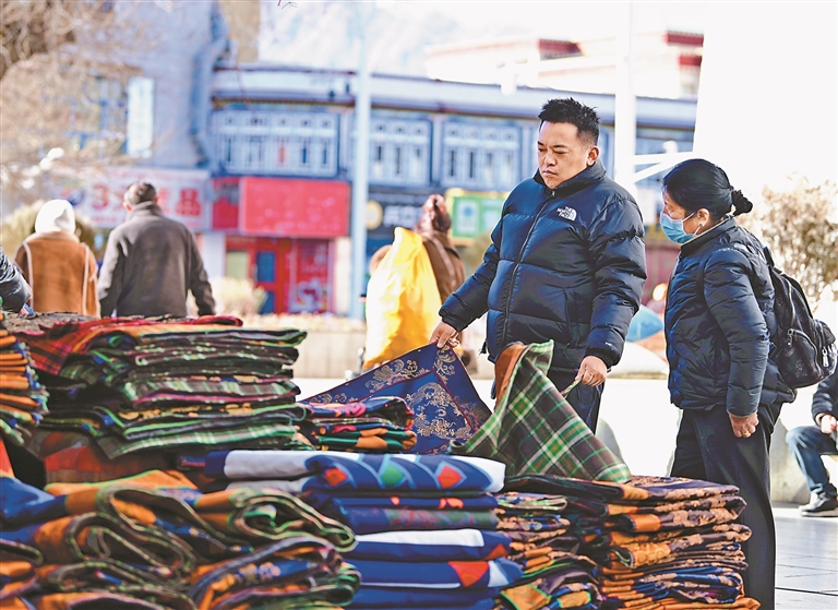 随着春节、藏历新年临近,拉萨街头年味渐浓,各大市场也热闹起来。八廓商城里更是人头攒动,迎来了一年中最红火繁忙的时节。市民们穿梭于各个摊位之间,精心挑选着藏装、切玛盒、门帘等年货,为迎接佳节做准备。熙熙攘攘的人流、琳琅满目的商品……处处洋溢着喜庆、温暖的气氛。