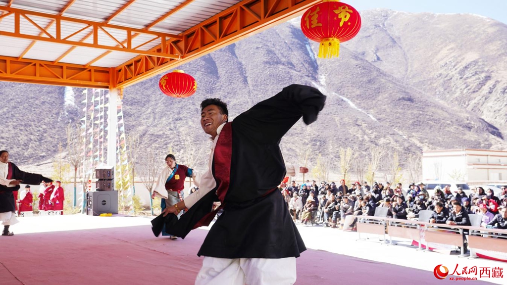 2月6日,门巴乡贴朗村文艺队身着盛装,表演传统舞蹈《那曲比如锅庄》。人民网记者 吴雨仁摄