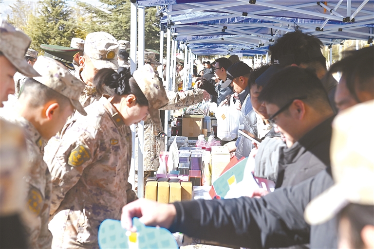 为深化军地协作、助力西藏地方经济发展,惠及部队官兵,近日,驻藏某部会同西藏自治区商务厅、农业农村厅、供销合作社、贵州省军民融合办在西藏军区机关举办消费帮扶新春产品展销会,有效促进了惠军服务与消费帮扶的深度融合,在丰富官兵日常消费需求的同时,又带动高原特色产业发展,取得了良好的社会效果。