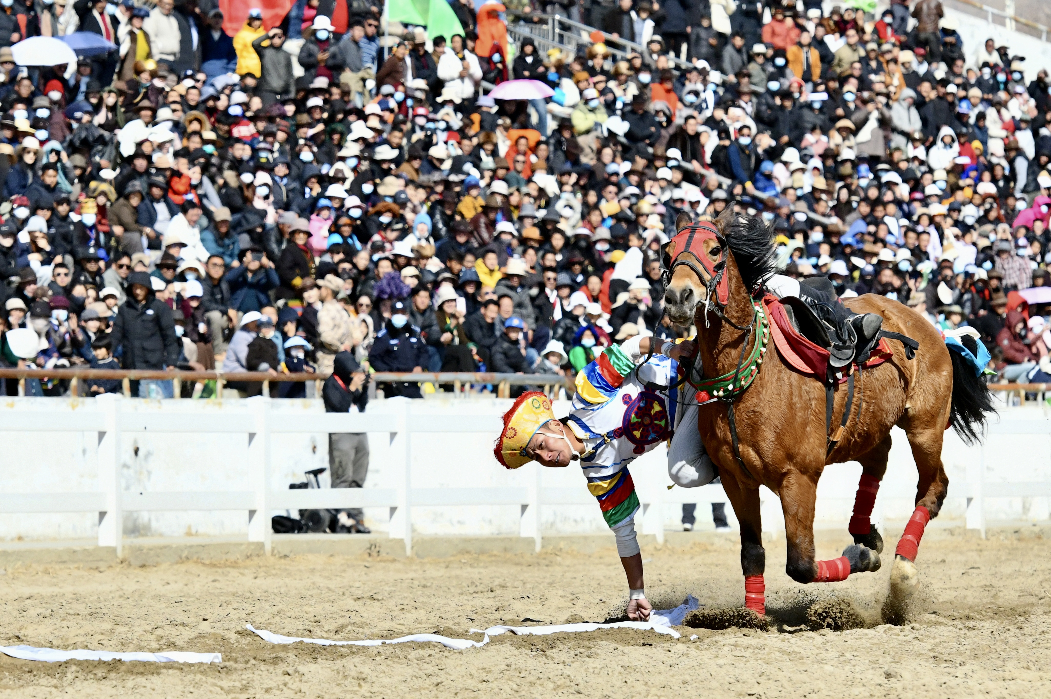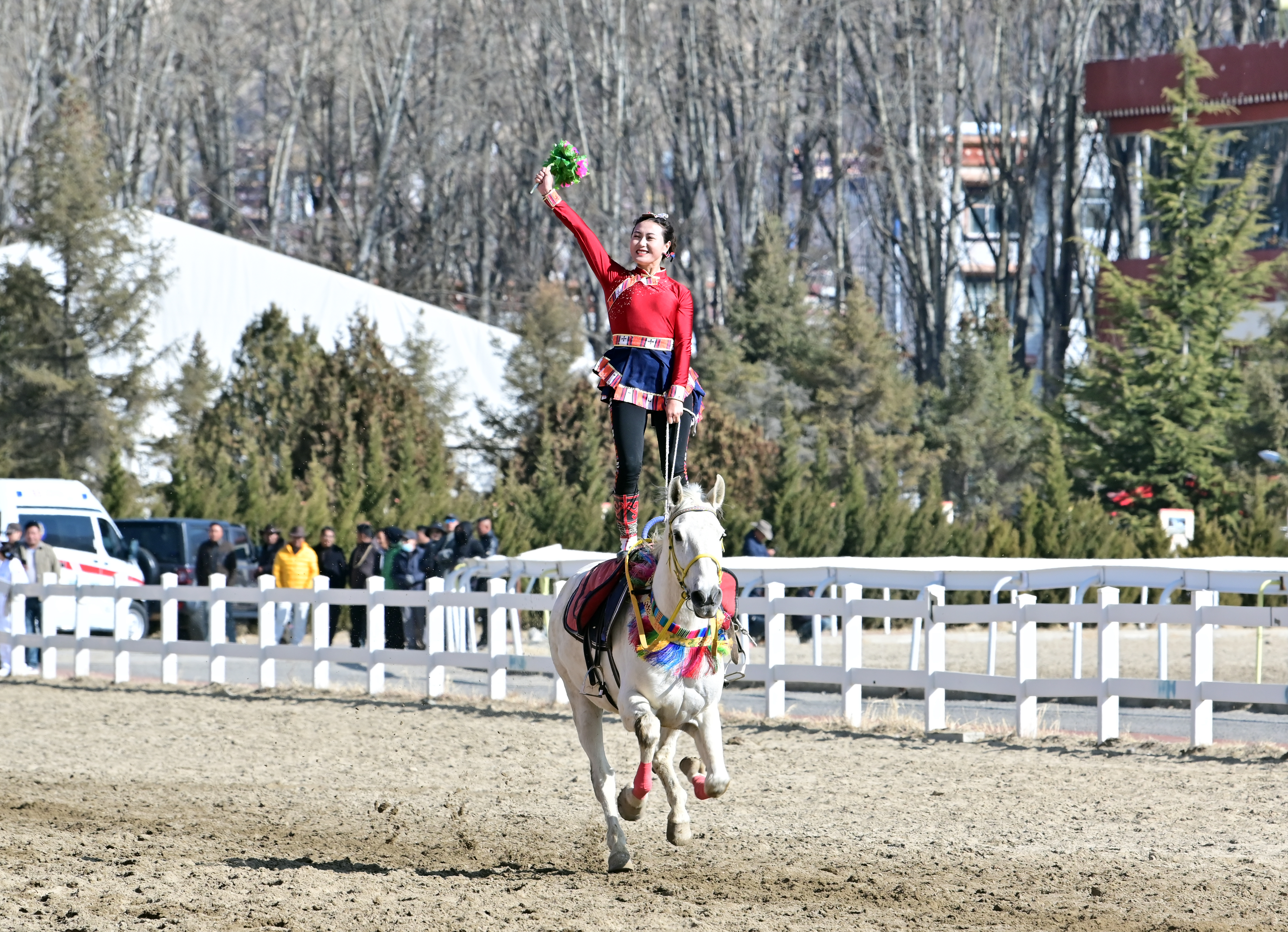 上午10时30分许,伴随着激昂的入场曲,身着节日盛装的骑手们骑着骏马昂首入场,拉开了活动的帷幕。在随后一个多小时里,骑手们轮番上阵,展示马上拾哈达、单人单马、多人多马等民族传统马术技艺。精湛的骑术、惊险的动作,赢得现场观众阵阵喝彩。与此同时,无限定2000米、3000米、5000米三个组别的民族速度赛马穿插进行,一匹匹骏马在骑手的驾驭下如离弦之箭,奋蹄争先。