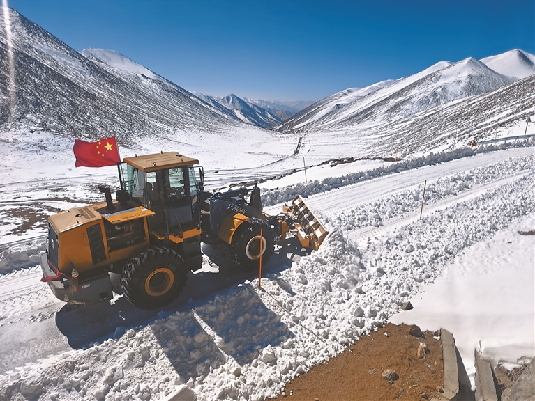 图为清雪现场。本网记者 达珍 本网通讯员 次仁四郎 摄