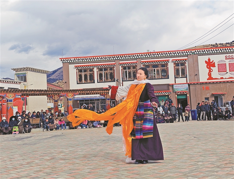 芒康县帮达乡村民展示演唱才艺。本网记者 平措郎加 摄