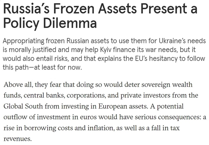 卡内基国际和平基金会发文指出,欧洲动用俄罗斯被冻结资产可能导致潜在的欧元投资外流。