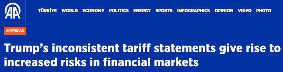 土耳其阿纳多卢通讯社(Anadolu Ajansı)27日的报道指出,美国政府在关税问题上前后不一的言论和难以预测的行动,导致全球金融市场风险加大、波动加剧,包括最近针对欧盟所作的决定。