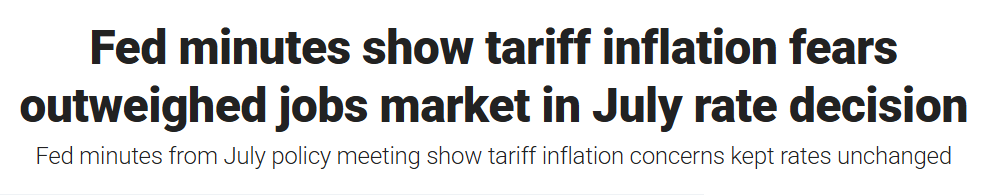 当地时间8月20日,美联储公布联邦公开市场委员会(FOMC)7月29日至30日的会议纪要。据福克斯商业频道(Fox Business)报道,美联储在此次会议上决定将联邦基金利率目标区间维持在4.25%至4.5%之间。与此同时,与会者对由关税推升的通胀风险的关注已超过对劳动力市场的担忧。