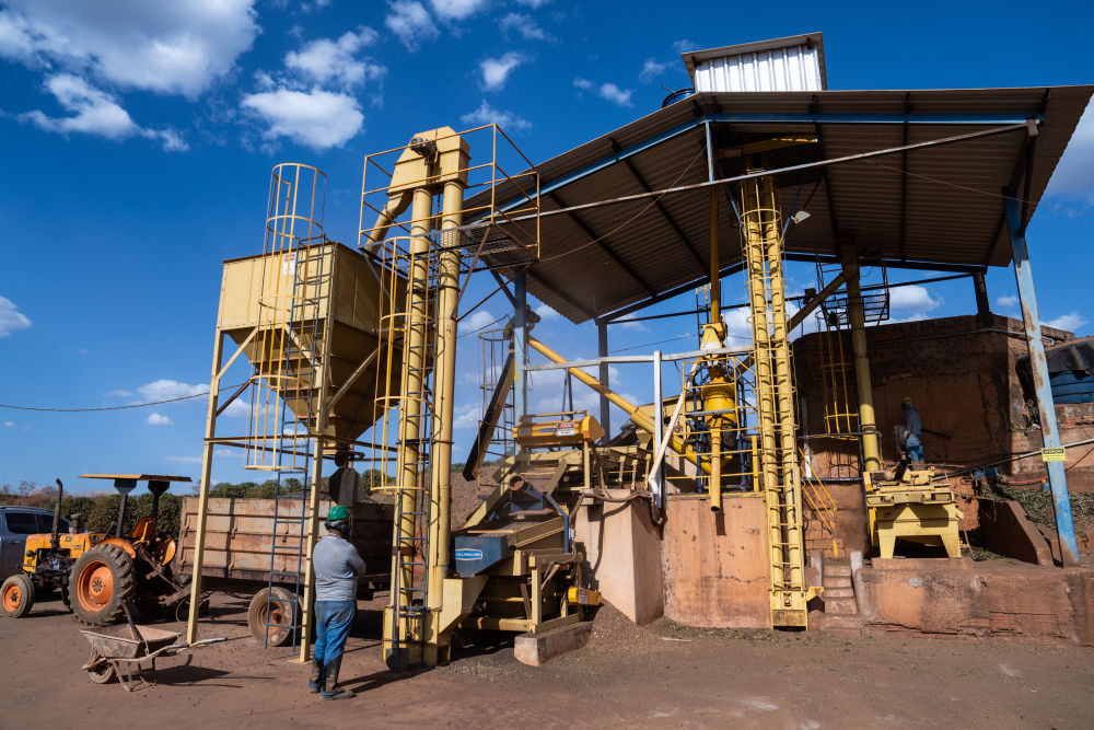 8月27日,在位于巴西米纳斯吉拉斯州巴拉那伊巴河畔卡尔穆的一家咖啡庄园,工作人员进行咖啡处理作业。新华社记者王天聪摄