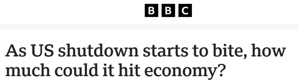报道引用富国银行分析师最近的分析指出,之前的大多数政府停摆,尤其是长时间的政府停摆,其范围都非常有限。但今年“如果政府停摆持续到下周,我们将进入未知领域。”格雷厄姆资本管理公司董事总经理则表示:“就政府关门及其对整体经济的影响而言,我们正到达一个关键的转折点。”