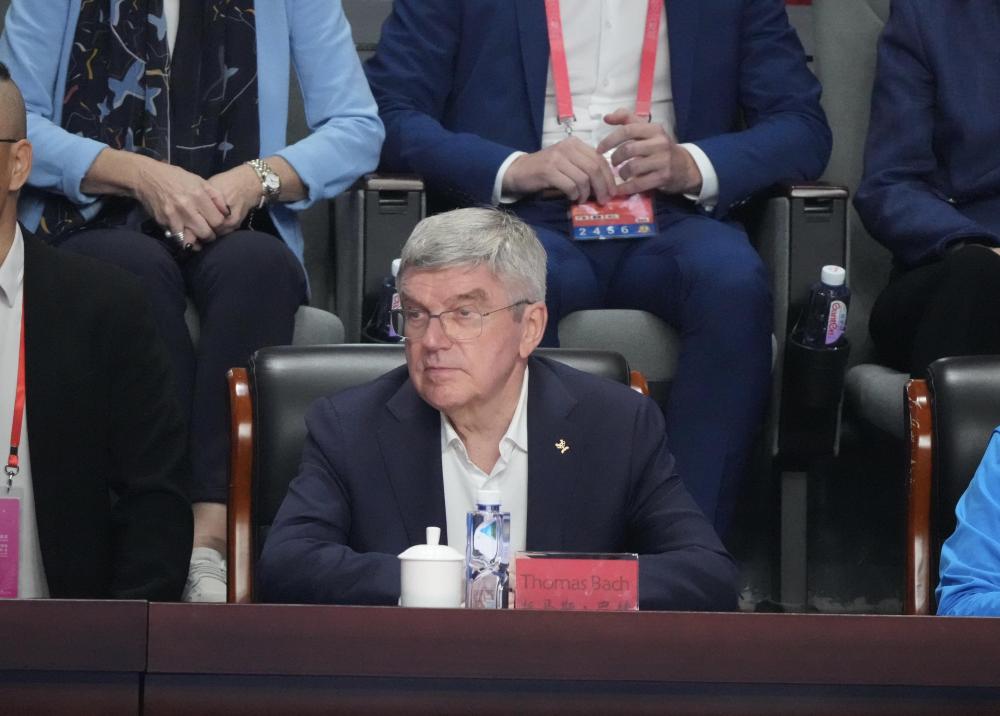 巴赫观赛十分专注:“今晚的比赛是精彩的十五运会的一部分。祝福所有的全运会运动员。继续加油!”