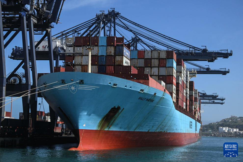 这是11月18日在智利圣安东尼奥港拍摄的服务于“车厘子快线”的货轮。新华社发(豪尔赫·比列加斯摄)