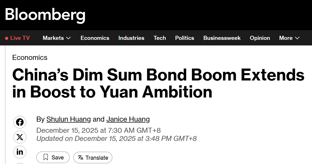 彭博社日前的报道也关注了人民币债券的热潮。报道通过数据展现,截至目前,今年离岸人民币债券发行总额约为8700亿元人民币,已经超过2024年创纪录的全年发行总量,连续8年实现增长。