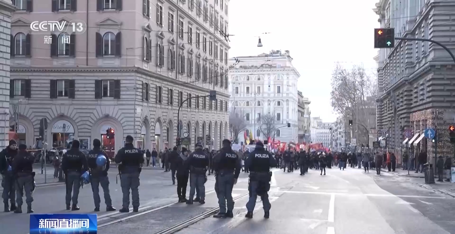 总台记者 殷欣:游行队伍从罗马市中心的一处广场出发,一直朝着美国驻意大利大使馆方向行进。在我身后,道路的尽头,就是美国驻意大利大使馆。现场可以看到,由于警方封锁了大使馆附近的道路,游行队伍并不能靠近大使馆。尽管如此,现场的示威者依旧对美国向委内瑞拉发动袭击表示了强烈谴责。