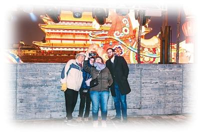 1月1日,陕西省西安市举办2026“长安灯会·西安城墙”新春系列文化活动,外国游客登城墙、赏花灯。张 成摄(人民图片)