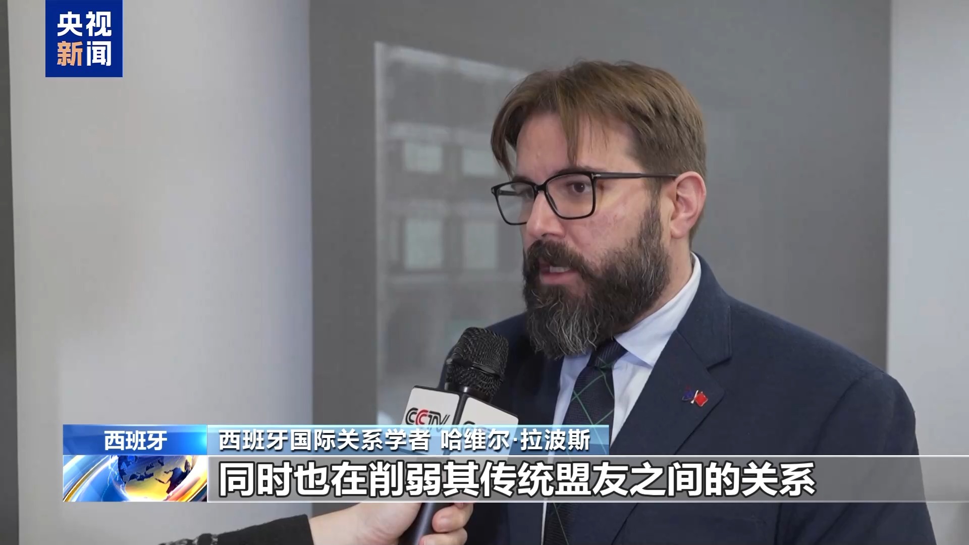 西班牙国际关系教授 哈维尔·拉波斯:目前,特朗普政府正在加剧北约内部的分裂,同时也在削弱其传统盟友之间的关系,而这些盟友正是欧洲国家,这是典型的“制造矛盾并从中得利”策略。美国认为这种做法可能对自己有利,认为欧洲的团结并不符合美国的利益,至少不符合现任美国政府的利益。