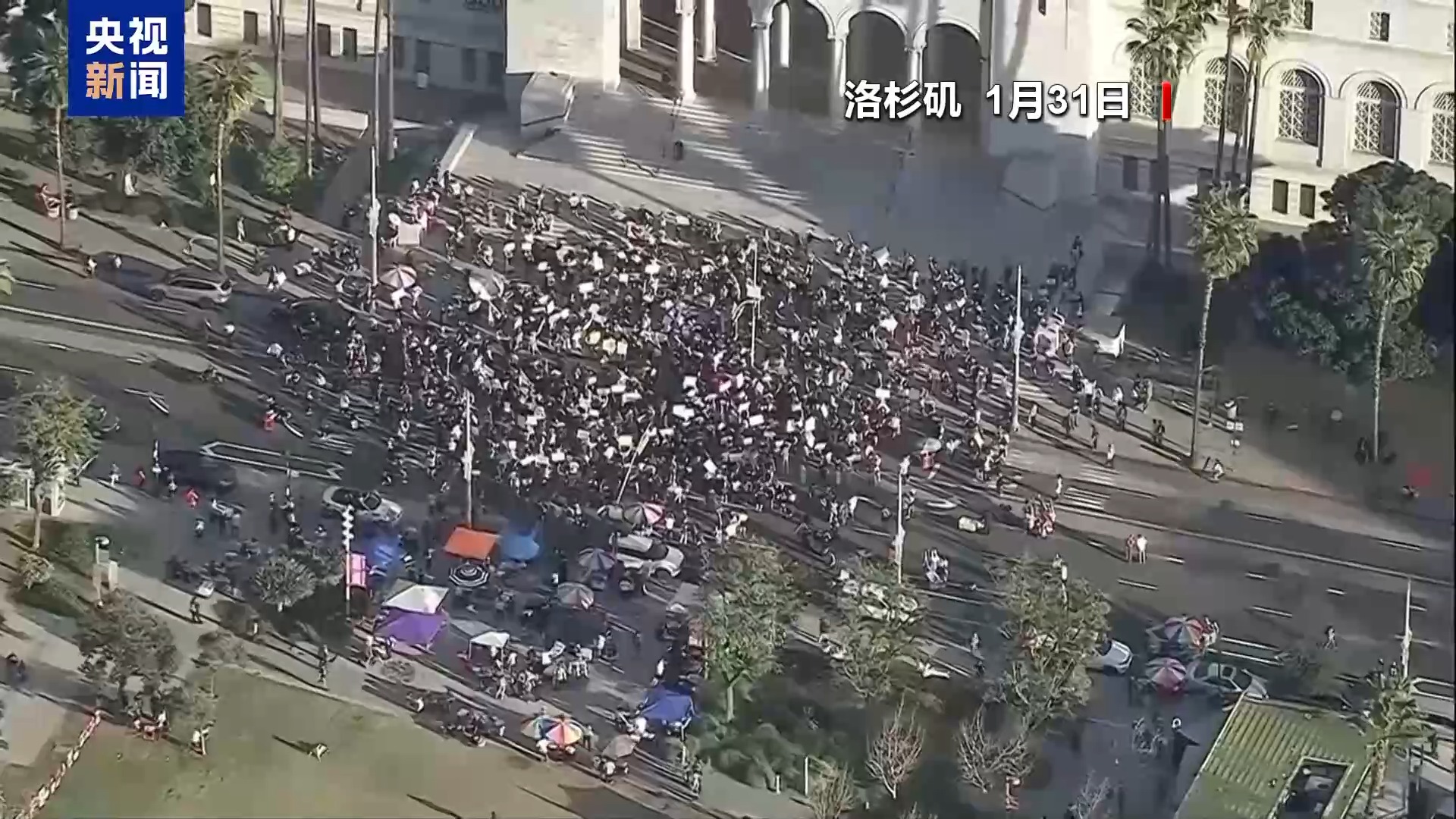 1月30日当天在洛杉矶,还有大批抗议者聚集在联邦机构大楼前,并一度与当地警方发生对峙和冲突。而在1月31日当天,在洛杉矶市中心,继续有抗议者举行集会,反对美国联邦政府移民政策,并要求联邦执法人员从当地社区撤离。