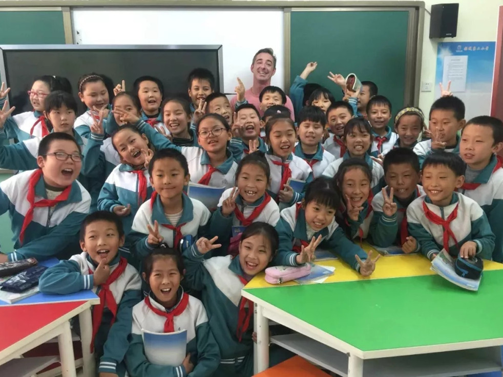 清晨的阳光,透过山东淄博高新区外国语学校一年级教室的窗户,洒在一群稚嫩的脸庞上。阿德里安正站在讲台上,面带微笑,为孩子们教授英语课。