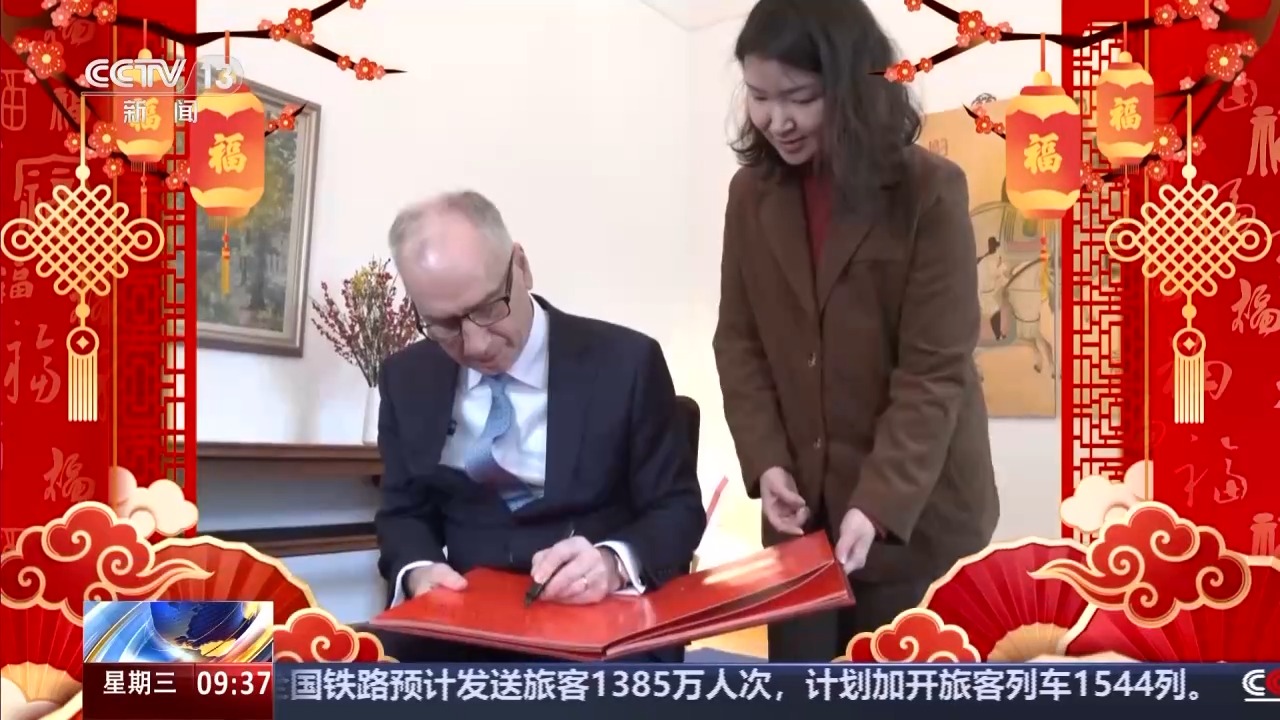 爱尔兰驻华大使欧博仁,在二十年前曾担任爱尔兰驻上海总领事。今年,则是他作为驻华大使,第二次在中国过春节。欧博仁说,“马”在中爱两国文化中都有奋进的寓意,中国和爱尔兰都爱好和平、开放包容、自立进取。爱尔兰今年将担任欧盟轮值主席国,欧博仁也期待新的一年继续巩固中爱双边关系,并进一步深化、发展中欧关系。