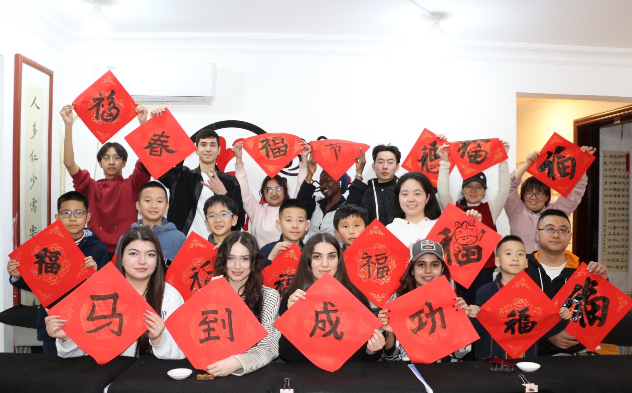 书法本身,就是中国文化极具代表性的表达方式之一。从横竖撇捺中,留学生们触摸到的不只是汉字结构,更是含蓄内敛、和合共生的东方审美气质和精神气象。当“福”字在宣纸上铺展,他们不止写下对春节的祝福,也是在书写对中华文化的理解与认同。