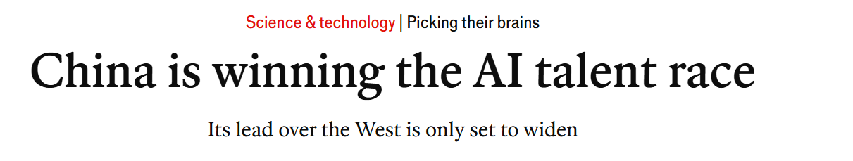 英国《经济学人》杂志网站近日发表题为《中国正赢得人工智能人才竞赛》的文章。文章认为,中国领先于西方国家的人才优势正在扩大。