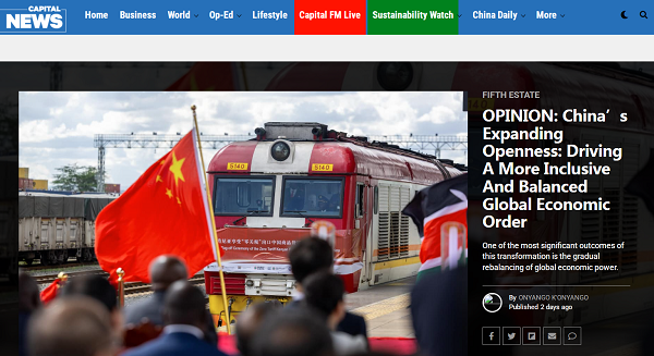 中国日报网4月1日电 肯尼亚首都调频(Capital FM)网站刊文称,中国的开放重新定义了中国与世界的互动方式,以及世界与中国的互动方式,正在稳步重塑全球经济秩序。