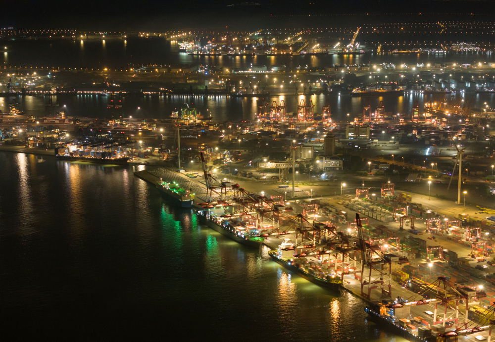 这是5月27日晚拍摄的天津港一景(无人机照片)。新华社发(韩喜龙摄)