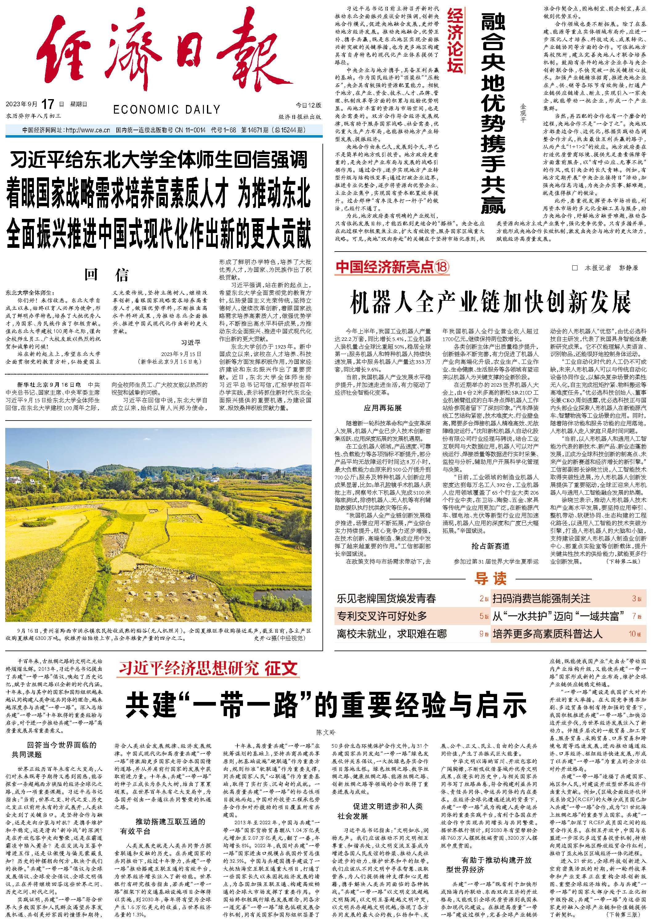 “我国拥有广阔的机器人应用市场,随着‘机器人+’行动稳步实施,以及在新能源汽车、医疗手术、电力巡检、光伏等领域的应用不断走深向实,将有力支撑行业数字化转型、智能化升级。”陈英说。