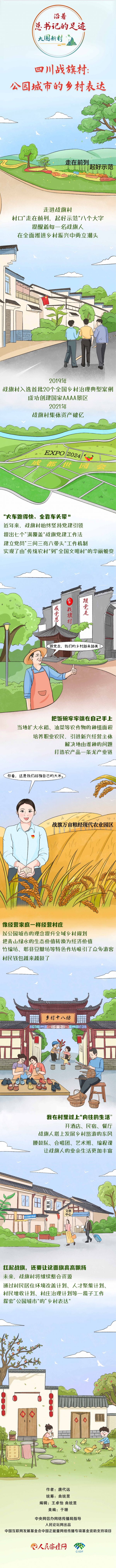 2018年2月,习近平总书记来到率先推行农村集体产权制度改革的成都市郫都区战旗村考察。他对战旗村党建活动、集体经济、产业发展、文旅融合等给予了充分肯定,称赞“战旗飘飘,名副其实”,并嘱托战旗村要在乡村振兴中继续“走在前列,起好示范”。
