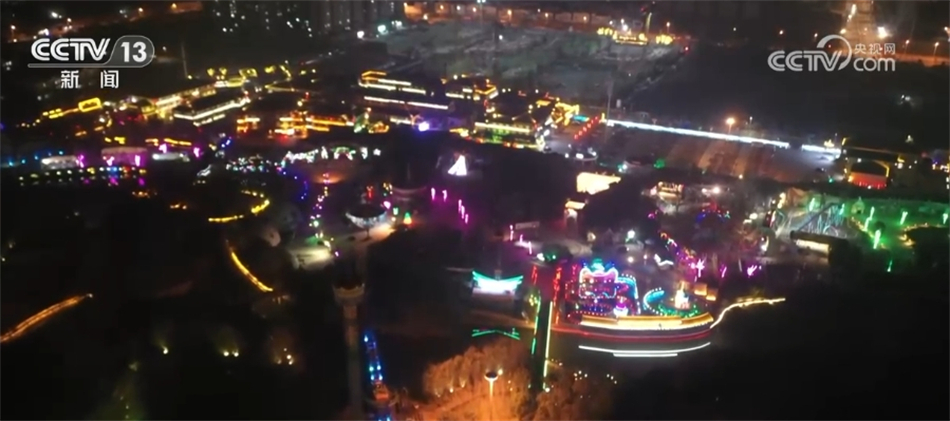 在河南漯河,近两万盏造型各异的灯饰把城市装扮得格外喜庆。夜幕降临,道路两侧灯光璀璨,古风建筑更显得美轮美奂。此外,当地还增加了水上国风节目表演,迎接新年到来。