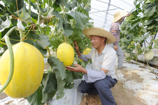 善港村村民在果园里采摘水果