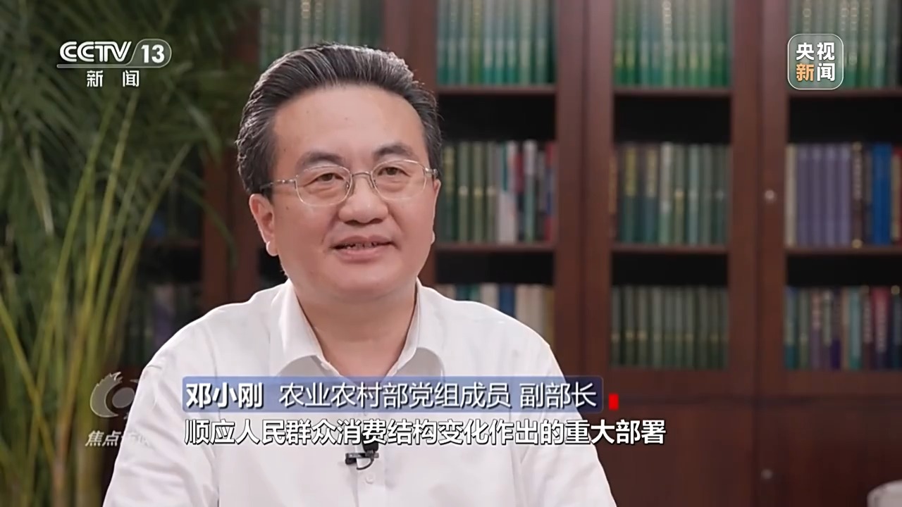 农业农村部党组成员、副部长 邓小刚:“保障粮食和重要农产品稳定安全供给,是农业农村部门的首要任务。践行大食物观是总书记、党中央顺应人民群众消费结构变化作出的重大部署,是破解资源环境瓶颈制约、端稳端牢中国人饭碗的客观需要。”