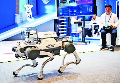 网络安全博览会上的企业展示电网巡线机器狗。新华社记者邓华摄