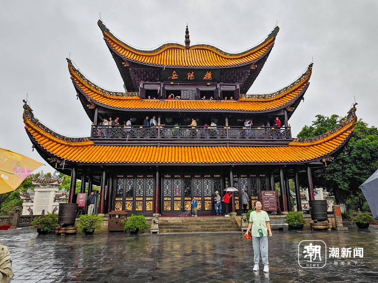雨中的岳阳楼依然抵挡不住游客打卡合影的热情。记者 彭鹏 摄