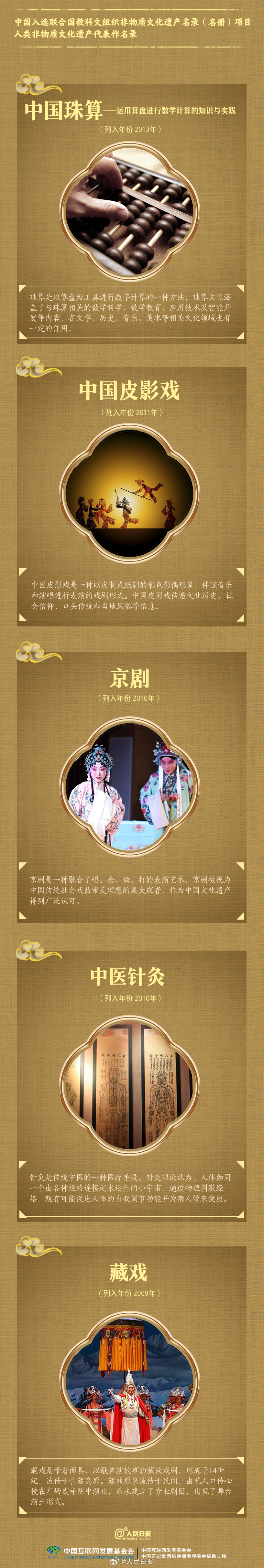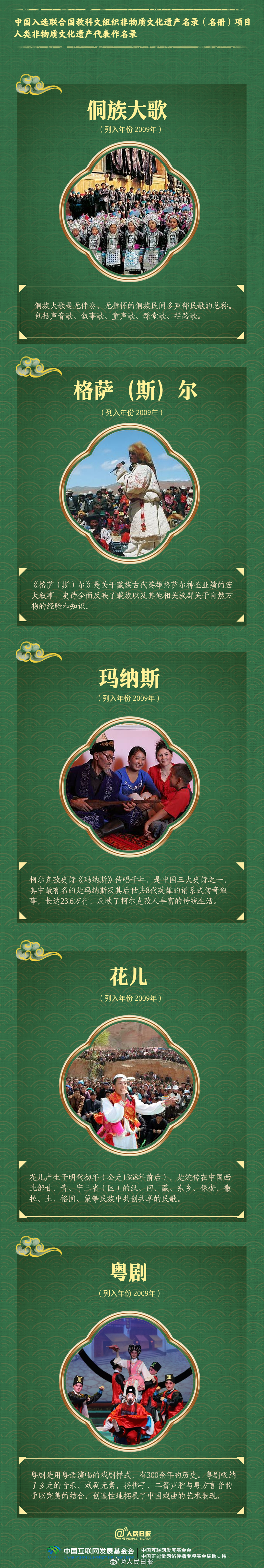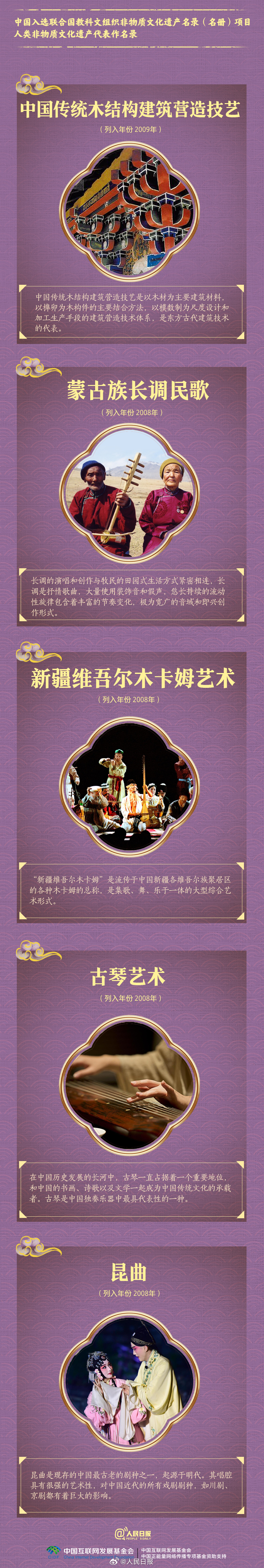 截至目前,我国共44个项目列入联合国教科文组织非物质文化遗产名录、名册,总数位居世界第一。