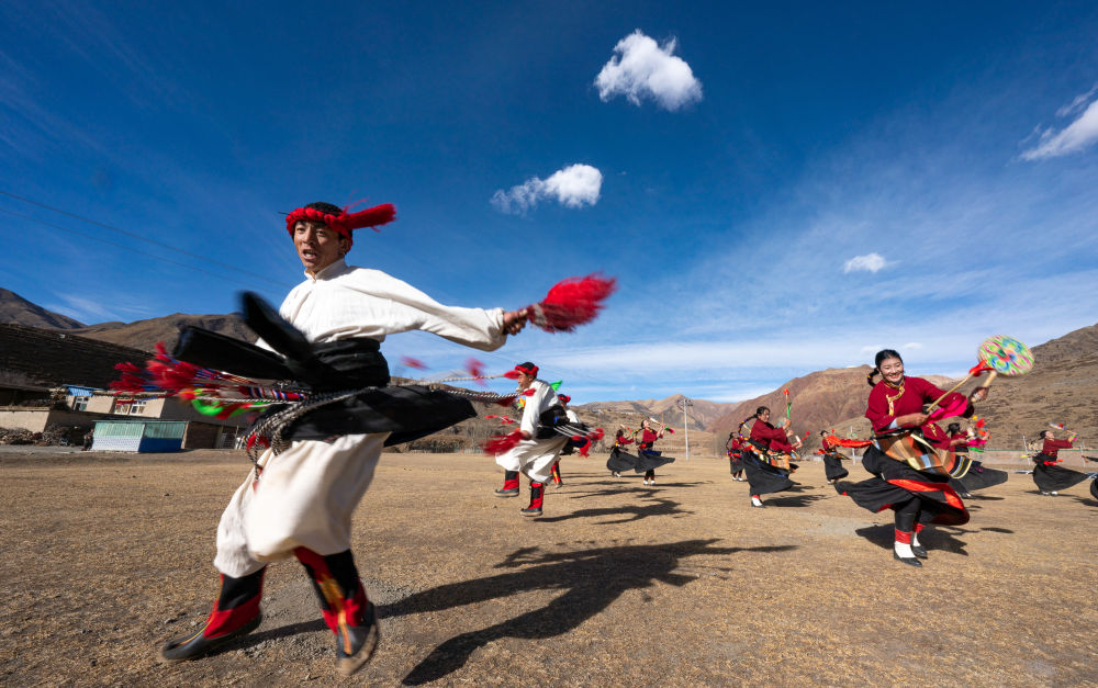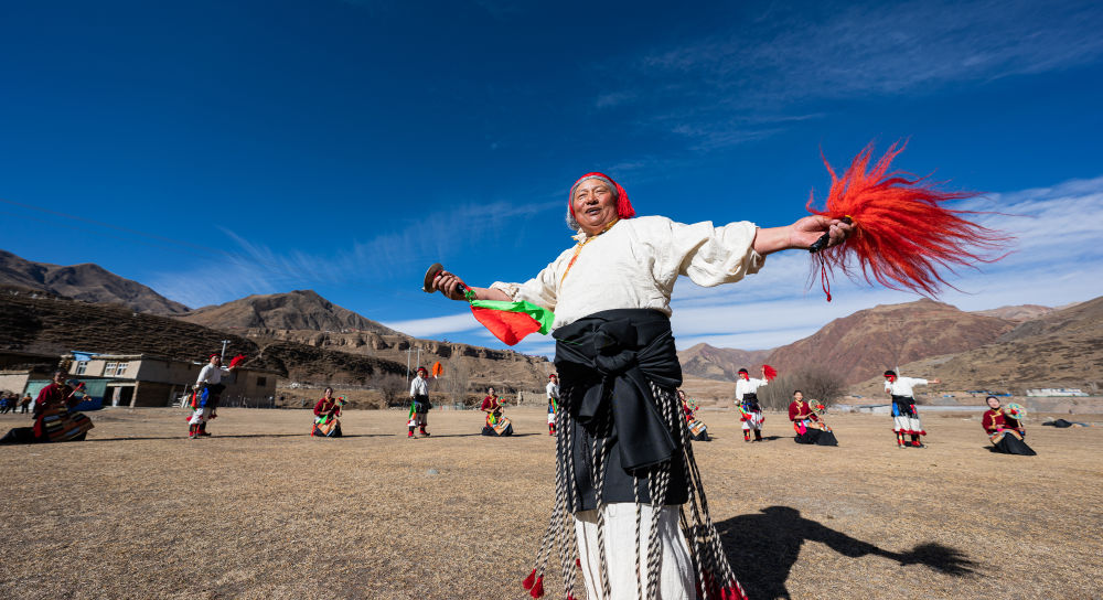 鼓槌落下,鼓点响起。姑娘们翩翩起舞,小伙们闪转腾挪。在西藏昌都市丁青县尺犊镇的草坝上,乌巴村文艺演出队正在排练热巴舞。60岁的祖化热巴舞传承人阿尼在一旁指导徒弟们的舞蹈动作,他大声地喊着:“脚步踩实一点,鼓敲得用力一点。” 热巴舞是一种鼓舞,也是一种融说、唱、舞、杂技为一体的综合性表演艺术,2006年被列入第一批国家级非物质文化遗产名录。丁青县有“热巴艺术之乡”的美称,全县范围内有68个村(社区)建有热巴文艺演出队。 阿尼说:“我从14岁开始和母亲学习跳热巴舞。”他回忆,母亲干完农活,孩子们就会围坐在她身边,听她讲热巴舞的历史。没过多久,他便着迷于这项传统古老的舞蹈艺术,这一跳便是46年。 年至花甲,阿尼仍旧深爱着热巴舞,他说:“有时看别人跳热巴舞,我坐在台下也跃跃欲试。”现在,他主要负责热巴舞教学和传承,近年来他培养了100多名热巴舞学徒。阿尼希望,他的徒弟们能把热巴舞带向更大更好的舞台,让更多人看到热巴舞的风采。
