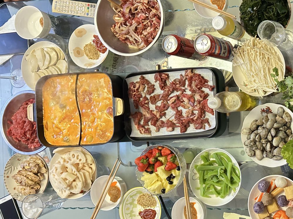 河南的小郑向爸妈提议换个方式吃年夜饭,一家四口用“一体锅”实现了“火锅和烤肉自由”;北京市民毛毛(化名)家里的年夜饭垫上了暖菜板,她说“不用担心吃到一半菜凉了”,饭后她用果蔬清洗机为家里人洗了水果……