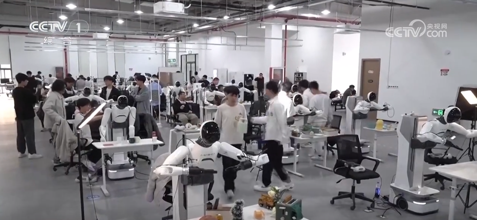 在上海张江的国内最大具身智能“数据工厂”里,百余台具身智能机器人正穿梭于家居、餐厅等场景。通过人工操控,采集海量实操数据,再结合国内首个通用具身基座大模型加强训练,让机器人更“聪明”。