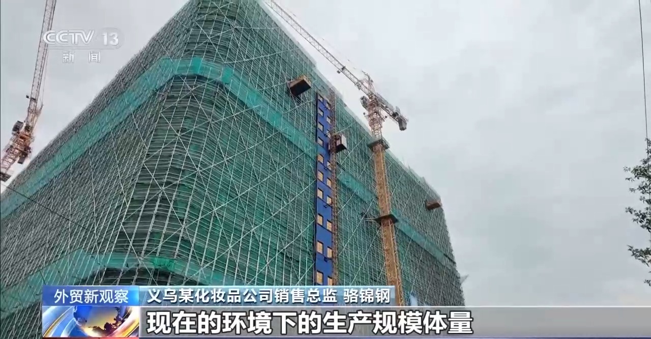 义乌某化妆品公司销售总监 骆锦钢:我们这个园区几乎是每个工厂都在改扩建,主要是因为原来的老旧厂房已经是不适合现在的环境下的生产规模体量,根据现在的复杂环境,在练内功,所以未来的企业会打造成智能化、数字化更高端的这种生产型企业。