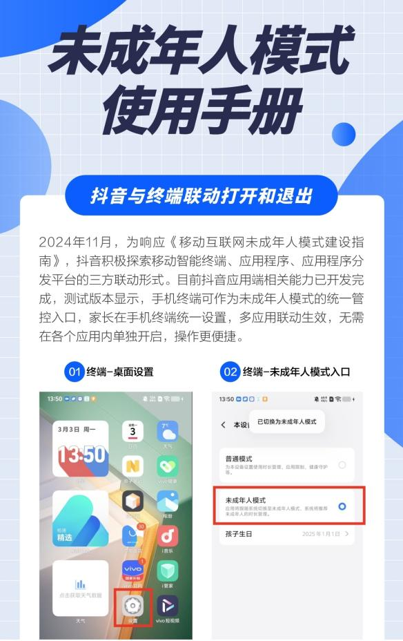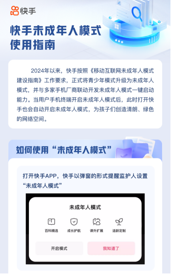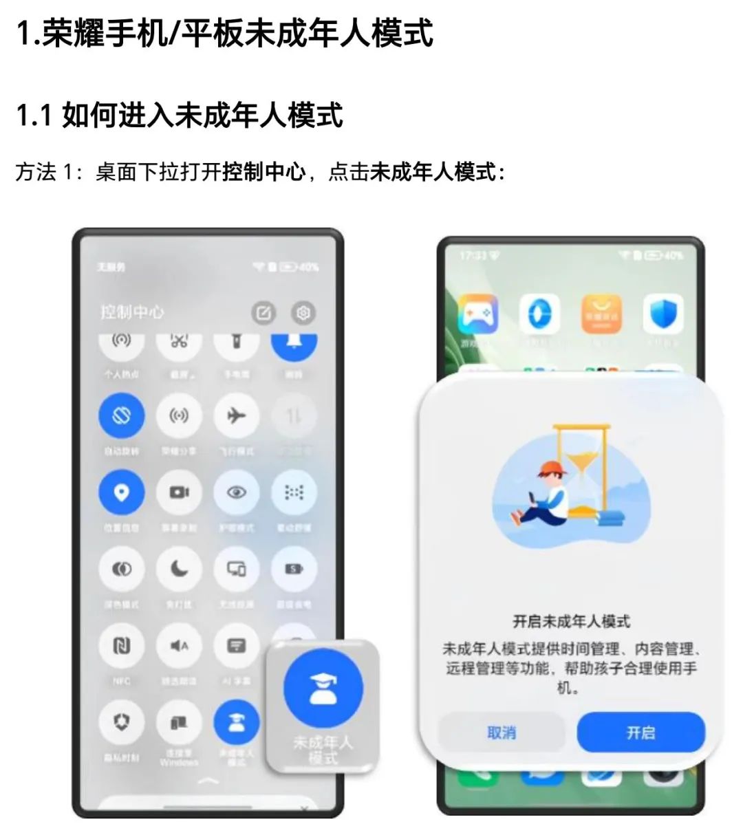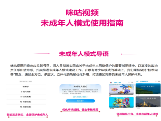 落实《未成年人网络保护条例》要求,国家网信办制定发布《移动互联网未成年人模式建设指南》,指导智能终端厂商和重点网站平台共同推进未成年人模式建设工作。近期,软硬件企业先后上线未成年人模式,提供便捷使用功能,丰富适龄优质内容,强化信息内容安全防护。为方便广大家长和未成年人了解使用模式,多家软硬件企业集中发布未成年人模式使用手册,系统介绍模式的主要功能和特色亮点,帮助用户根据自身需求选择各项功能服务,最大限度发挥模式保护效能。