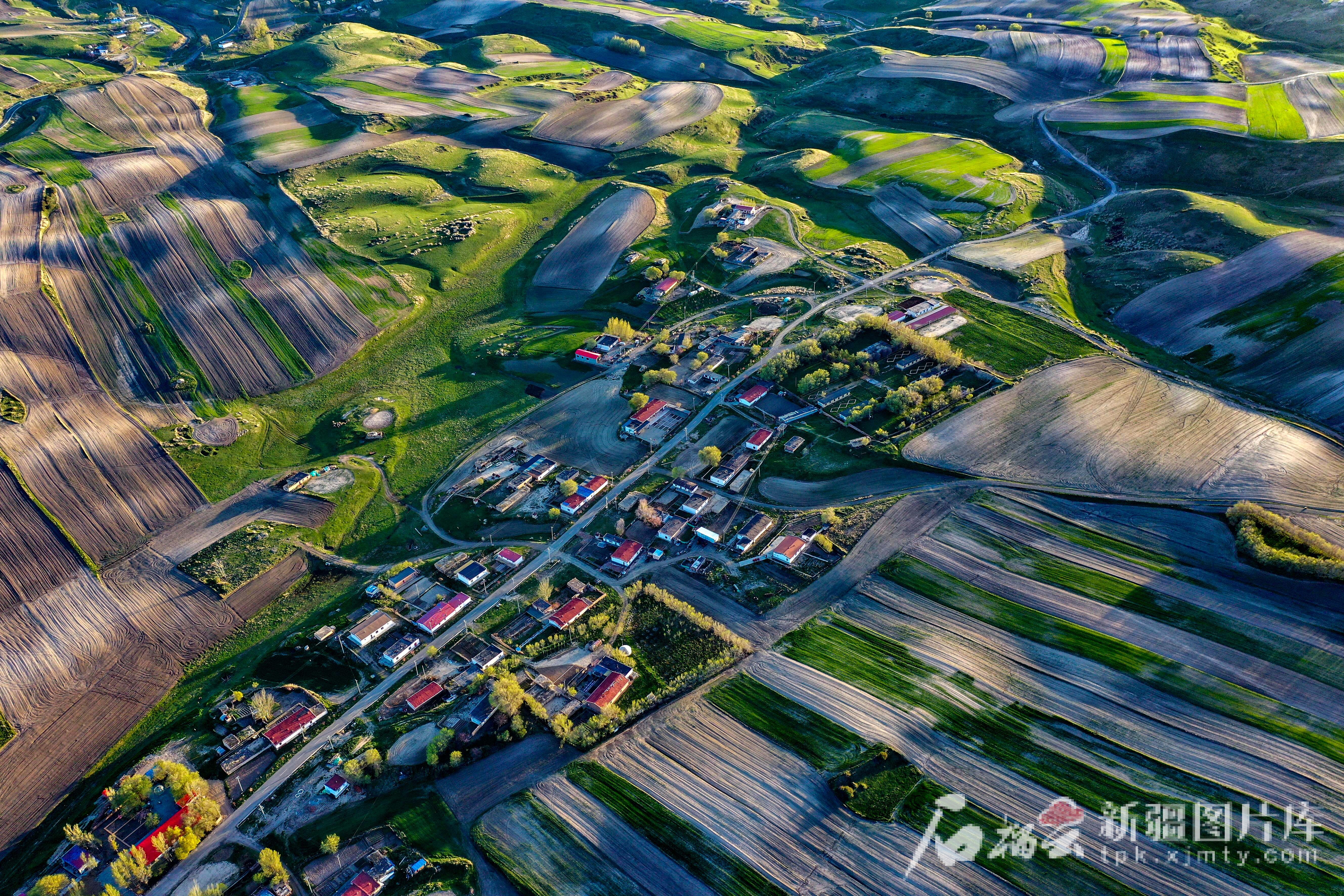 天山网-新疆日报讯(记者蔡增乐摄影报道)飞瞰庭州,乡村如画。