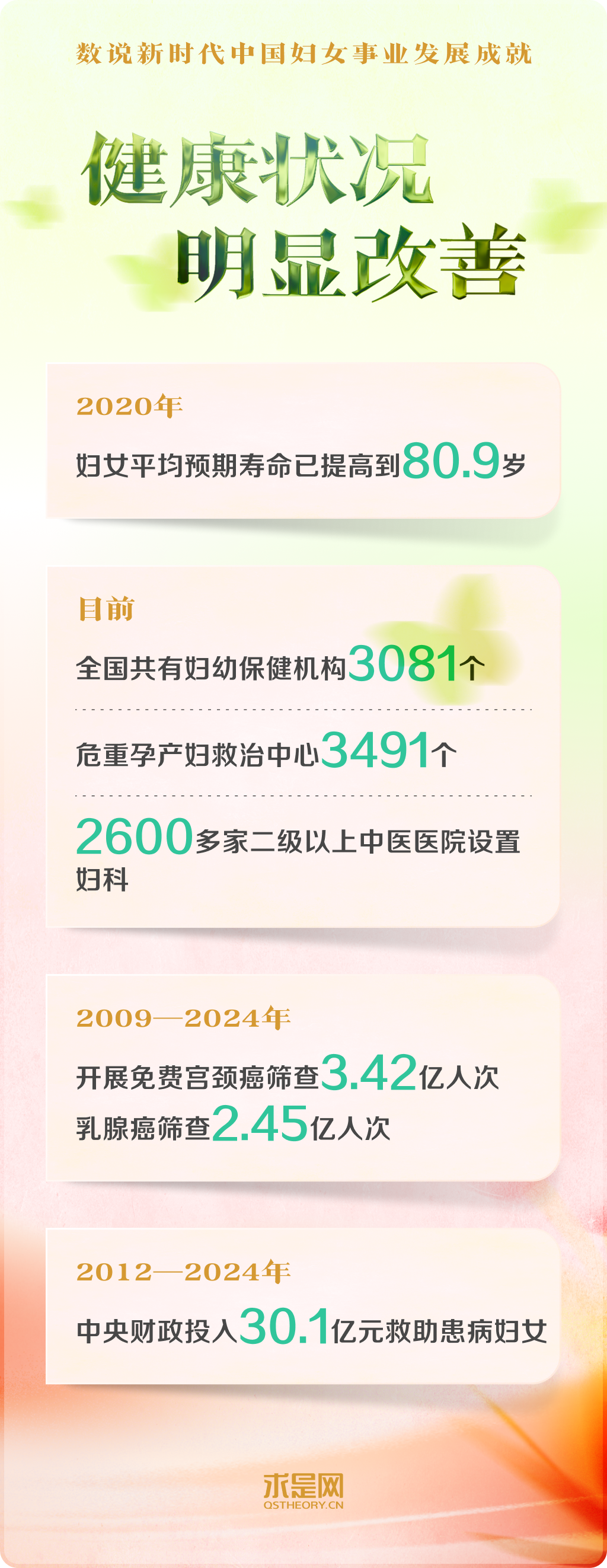党的十八大以来,以习近平同志为核心的党中央把保障妇女合法权益、促进男女平等和妇女全面发展,作为中国式现代化的重要内容,对妇女事业发展作出一系列开创性、全局性、长远性的重大决策部署。中国在幼有所育、学有所教、劳有所得、病有所医、老有所养、住有所居、弱有所扶上持续用力,不断实现广大妇女对美好生活的向往。一组组数字,记录下新时代中国妇女事业跨越式发展的重大成就。