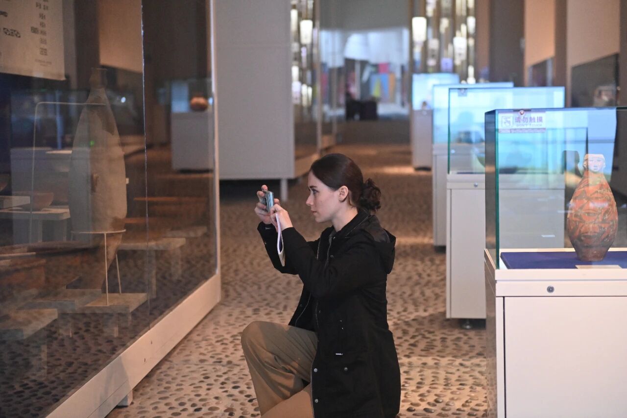 2024年10月22日,2024青年汉学家研修计划甘肃班团队22个国家的青年汉学家,走进甘肃省天水市秦安县大地湾遗址参观并进行专题研修。中新社记者 李亚龙 摄