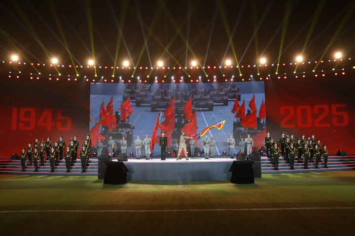 当战旗展开的那一刻,王宸一郑重嘱托:“你们要将这战旗攥得更紧,举得更高!战旗所指,就是前进方向。”他对着在场的师生高声发问:“想想民族屈辱,想想抗战先辈,革命先烈的精神,你们忘没忘?”台下齐声回应:“没忘!没忘!永不忘!”