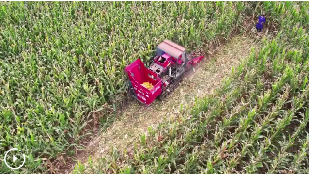 在河南省新乡市卫辉市上乐村镇的农田中,履带式收割机正在玉米田间推进。为抢抓雨歇间隙,每台收割机都配备两三名机手,只要天气和墒情允许,收割机就不间断进行收获作业。