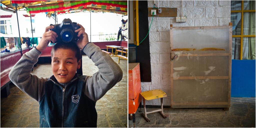 拼版照片:2013年10月9日,达瓦次仁在用相机拍照(左图);达瓦次仁拍摄的照片(右图)。