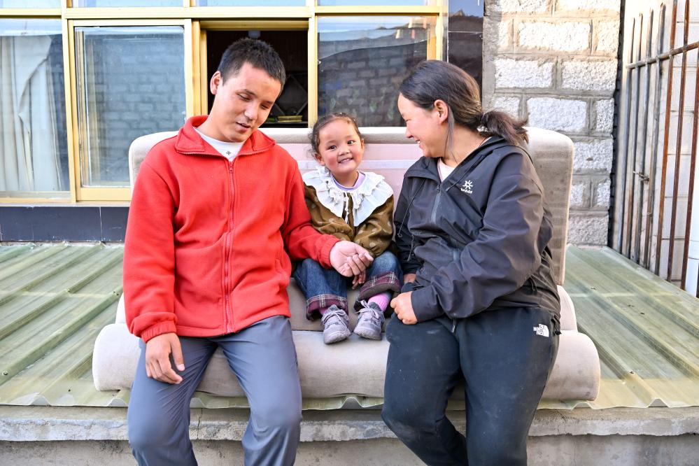 2025年10月10日,达瓦次仁在陪大女儿丹增曲音玩耍。