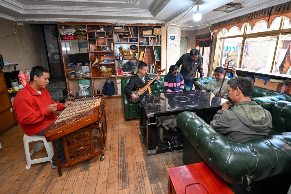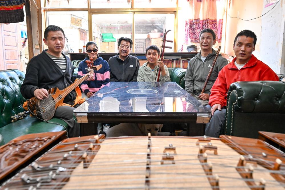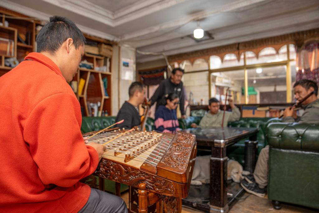 在其美多吉老师的悉心指导下,这群年轻人逐渐掌握了二胡、扬琴、扎念琴等传统乐器,开始了朗玛堆谐的表演生涯。“那会儿天不亮就起床,练三个小时才吃早饭,然后一直练到天黑。”乐团主唱次仁曲珍回忆道,“刚开始时,一两个月才能学会一首曲子。”