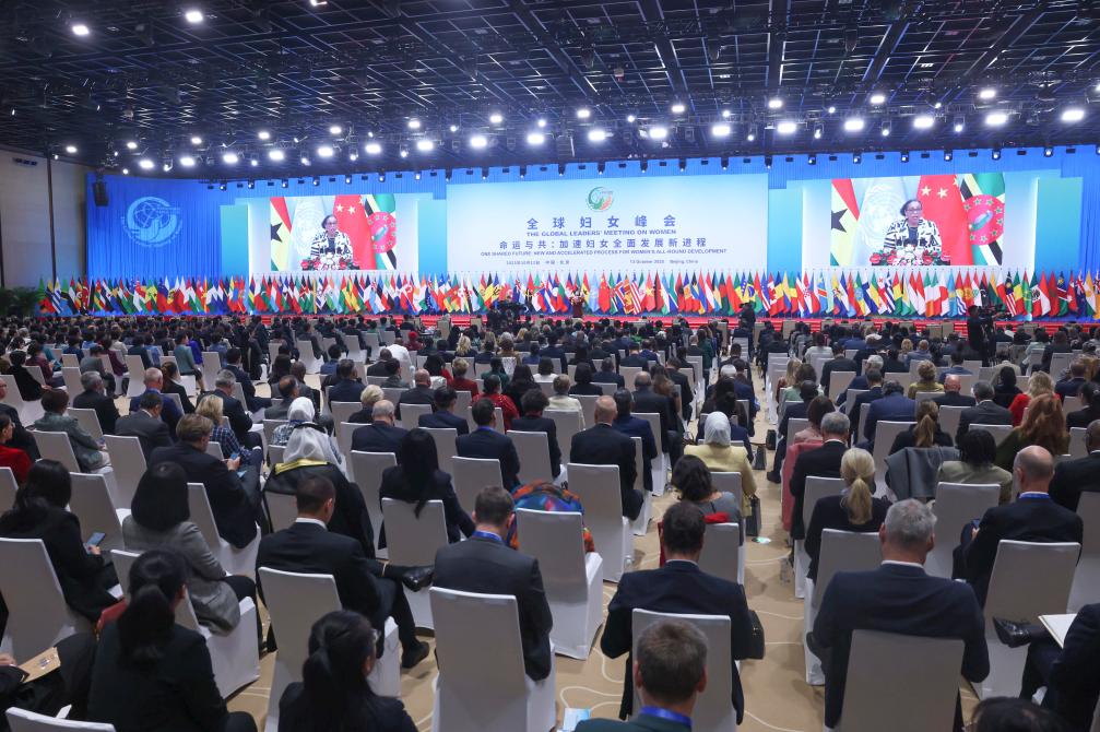 10月13日下午,全球妇女峰会闭幕式在京举行,约800名来自110多个国家和国际组织的代表出席。新华社记者 张玉薇 摄