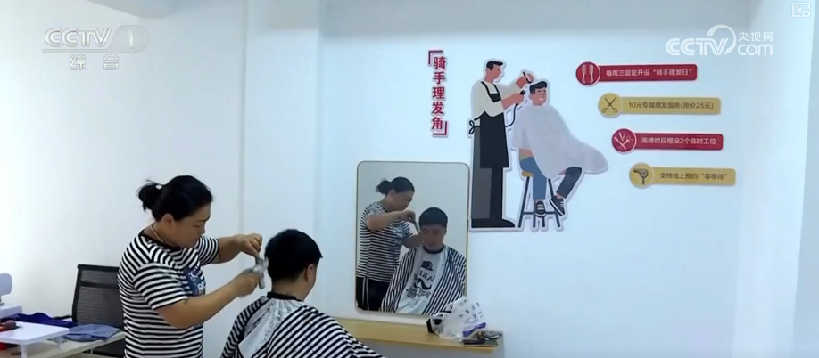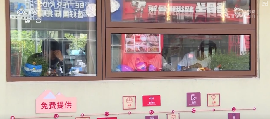 与此同时,社区也回报给骑手们“家”的温暖,精心打造骑手驿站。骑手们在这里不仅可以避雨、充电、歇脚,还能参与健康义诊等定期活动。社区还成立了新就业群体联合工会,提供子女课后托管、健身养生等服务项目。