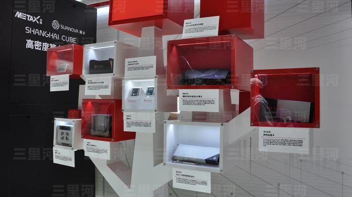 2025世界人工智能大会中国人工智能产业创新成果展上,展出的AI芯片/加速卡。
