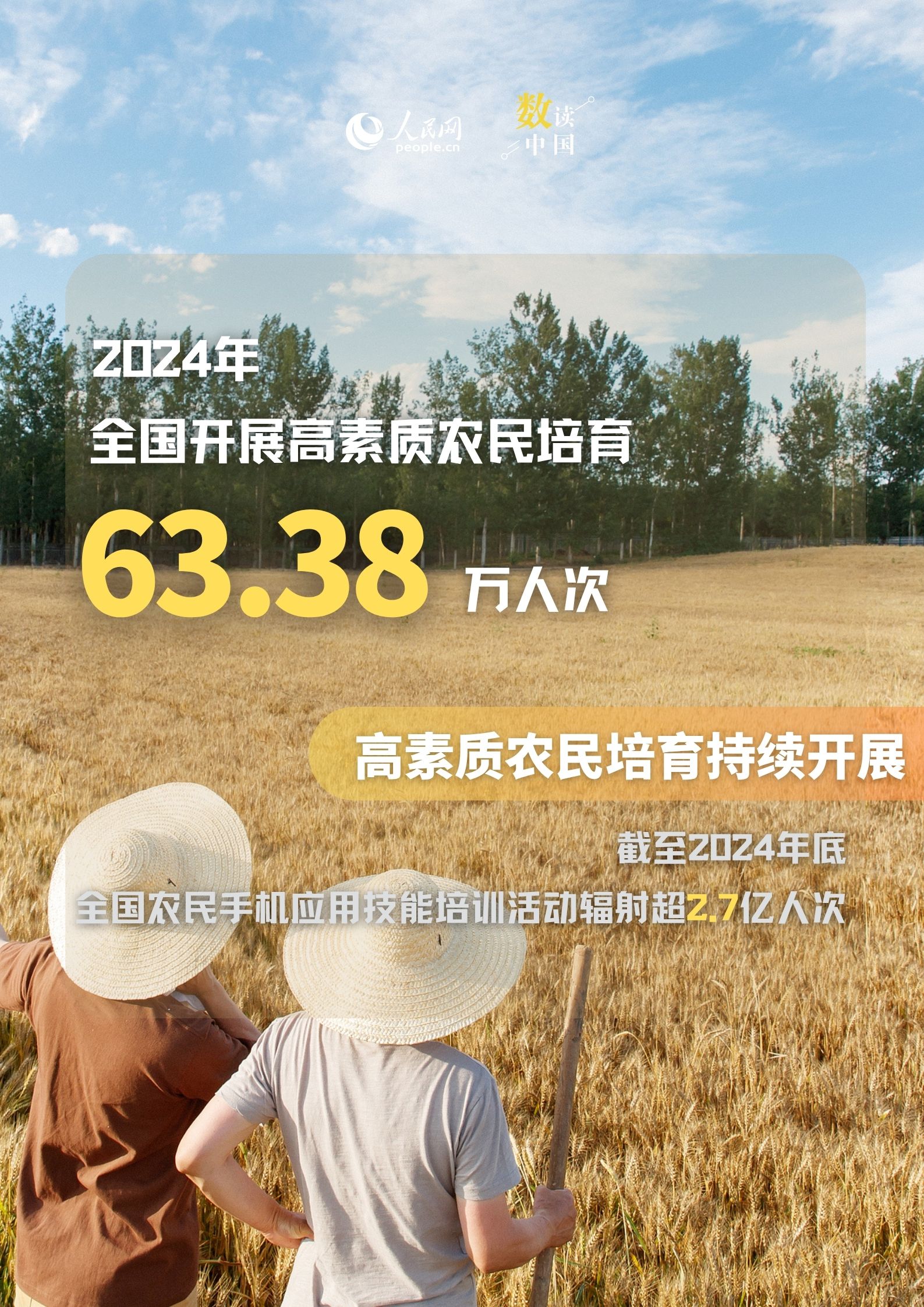 乡村振兴,关键在人。近年来,我国深入推进高素质农民培育,努力提高高素质农民学历层次,广泛开展农业农村实用技术培训,高素质农民队伍的整体素质和发展能力明显提升,为推进乡村全面振兴、建设农业强国提供了坚实的人才支撑。一组数据,带你看懂我国高素质农民发展最新成果!